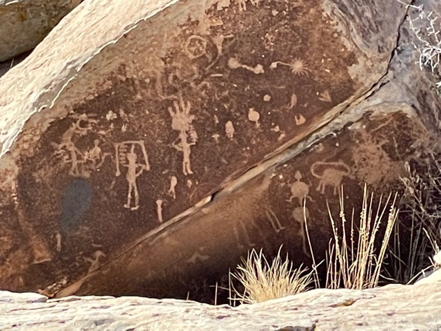 Petroglyphs offer mysterious rock-Pinterest images. The social media of the times featured many animals but a persistent petroglyph is the human handprint. Many interpretations offer important legacy messages: a holy place, a family marker, a ceremonial signature, a prayer or perhaps a map signifying, “Go this way.” Handprints with a spiral in the palm are thought to express messages of power, migration, or healing (read more about petroglyph spirals in Pearls and Swirls, 1-10-22).