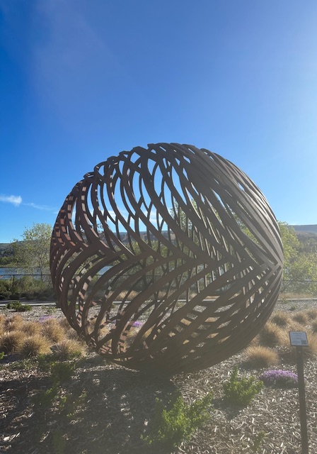 Bernard Hosey’s rusted steel sculpture in a sphere of twisted V shapes and curved arcs is described as “a relic from an ancient civilization or a blueprint for intersteller travel.” The title, Pre-Mathematics, recognizes that there is an origin for everything. This notion when applied to human aggressive behaviors — including lethal behavior like family or societal war — addresses causes that came before a current provocative cause. Aggression and violence erupt out of a lineup of causes. When will we take the time to address the causes proactively that came before the straw-that-broke-the-camel’s-back cause?