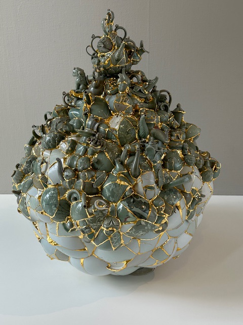 Alvarez’ new dream is finding others to replicate his work. He has supported programs at refugee camps in the West Bank and Greece. Korean artist Yeesookyung also celebrates the beauty of imperfection and “second chances.” Connecting broken shards of pottery delivers a changed vessel.